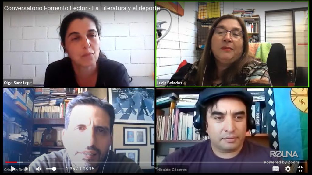 Conversación con las panelistas estables Olga Sáez (profesional Editorial ULS, diplomada en mediación cultural y fomento lector) y Lucía Bolados (Corporación Municipal Gabriel González Videla) y los escritores invitados: Nibaldo Acero y Cristian Brito.