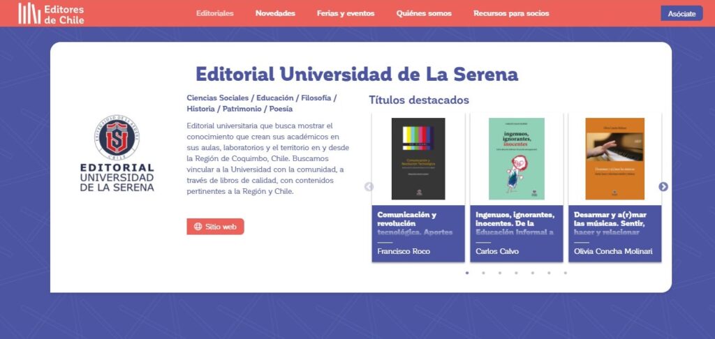 El nuevo sitio web de la asociación, de la cual es parte la Editorial de la Universidad de La Serena, servirá de catálogo para encontrar a más de 90 editoriales independientes en un solo lugar, además de noticias y artículos relacionados al ecosistema del libro.