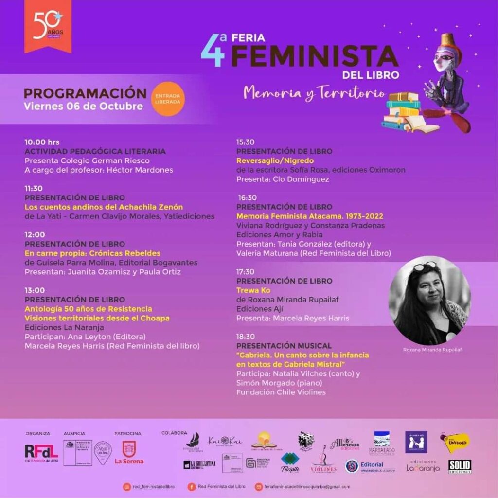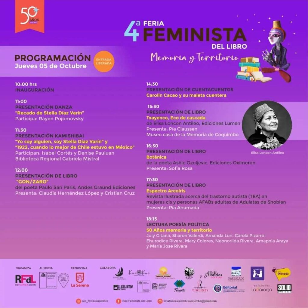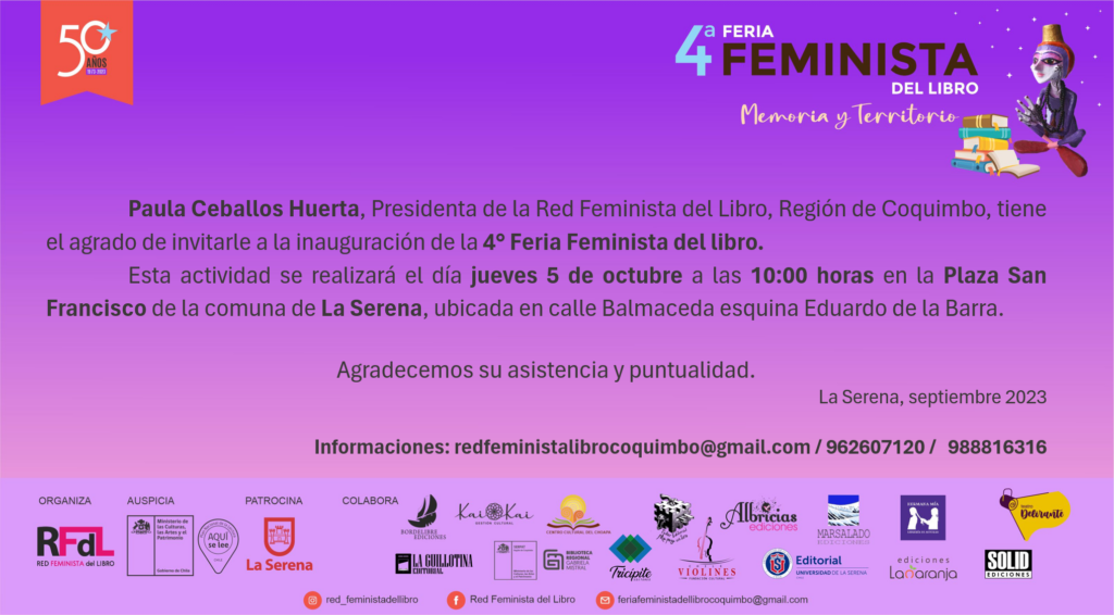 Con el subtítulo “Memoria y Territorio”, se llevará a cabo la 4a Feria Feminista del Libro que tendrá lugar los días jueves 5 y viernes 6 de octubre en la Plaza San Francisco de La Serena.